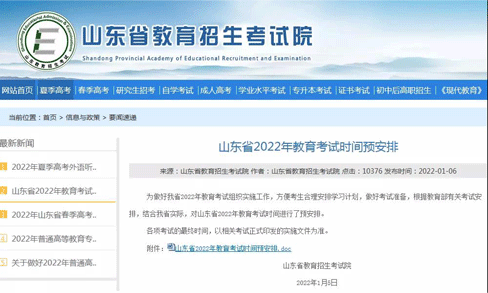 山東省2022年教育考試時(shí)間預(yù)安排